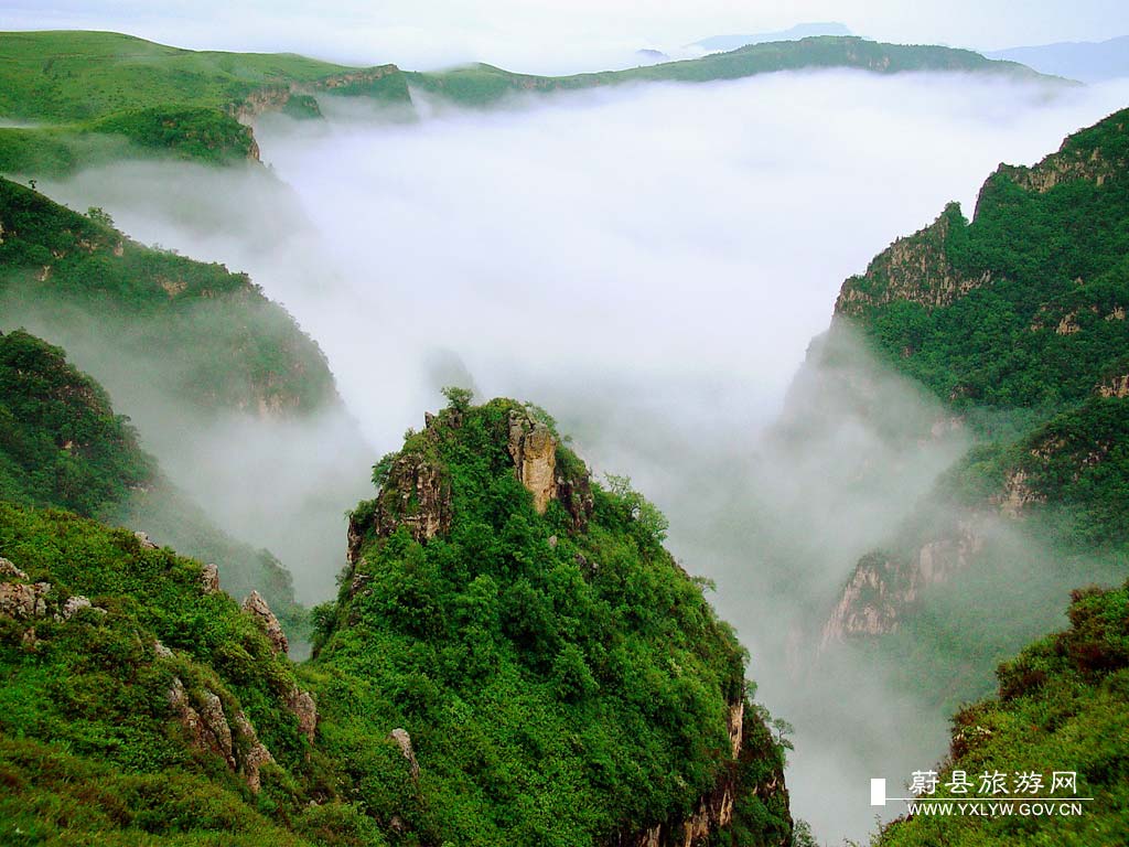 圖片說明:空中草原位于河北省蔚縣城西南40公里與淶源縣及山西省交界處,屬高山草甸,海拔2158米,因其高峻平坦而名“空中草原”。南部怪石林立、懸崖蜿蜒,中部是36平方公里一望無際的大草原,北部是8000畝森林。甸下峰巒疊障,甸上一望無垠。這里花草交織,綠茵如毯,白云飛渡,天地相連,讓人更覺得恍若天堂,美不可言。景區(qū)接待中心設(shè)有飛狐飯店、啤酒廣場、賓館、餐飲樓等設(shè)施;另外,還有民俗表演、歌舞娛樂、篝火晚會(huì)等娛樂活動(dòng)。