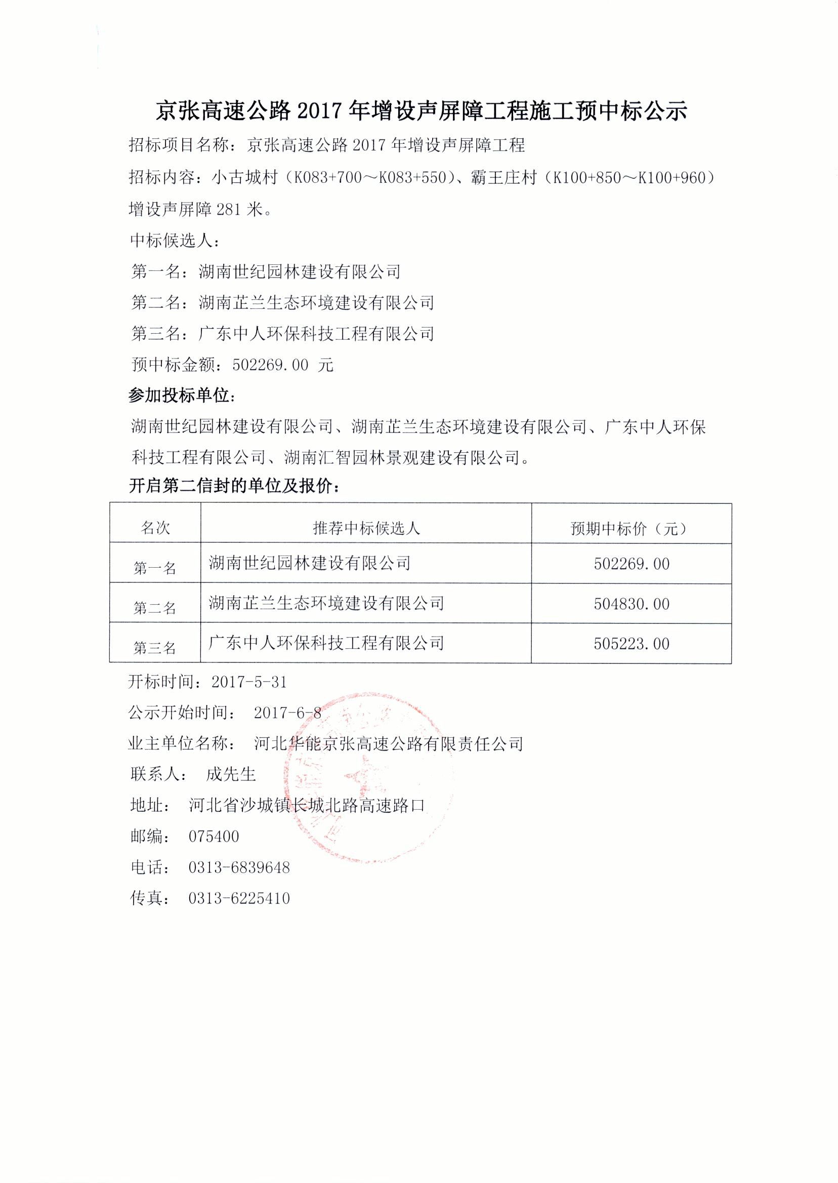 2017年增設(shè)聲屏障工程預(yù)中標公示