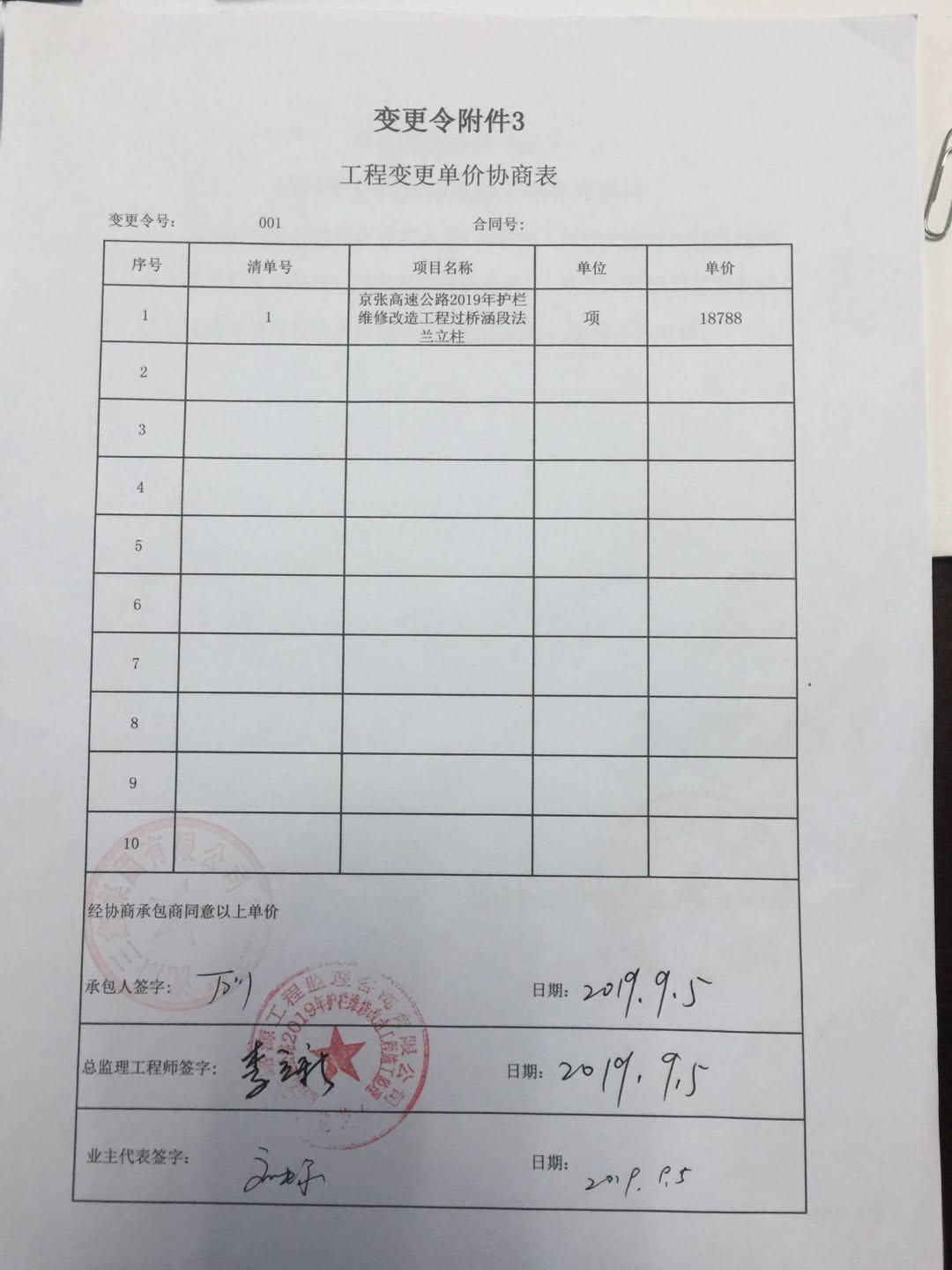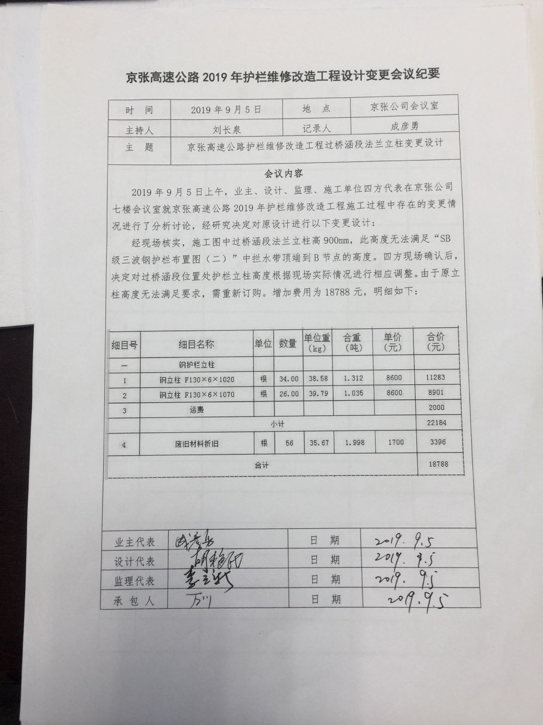 京張高速公路2019年護(hù)欄維修改造工程設(shè)計(jì)變更