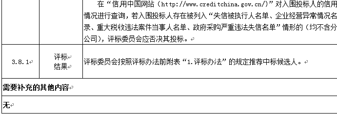 3.4在“信用中國”網(wǎng)站(http://www.creditchina.gov.cn/)中被列入失信被執(zhí)行人名單、企業(yè)經(jīng)營異常名錄、重大稅收違法案件當事人名單、政府采購嚴重違法失信名單(均不含分公司)及國家企業(yè)信用信息公示系統(tǒng)(http://www.gsxt.gov.cn/)中被列入嚴重違法失信企業(yè)名單(不含分公司)的投標人,不得參加投標。